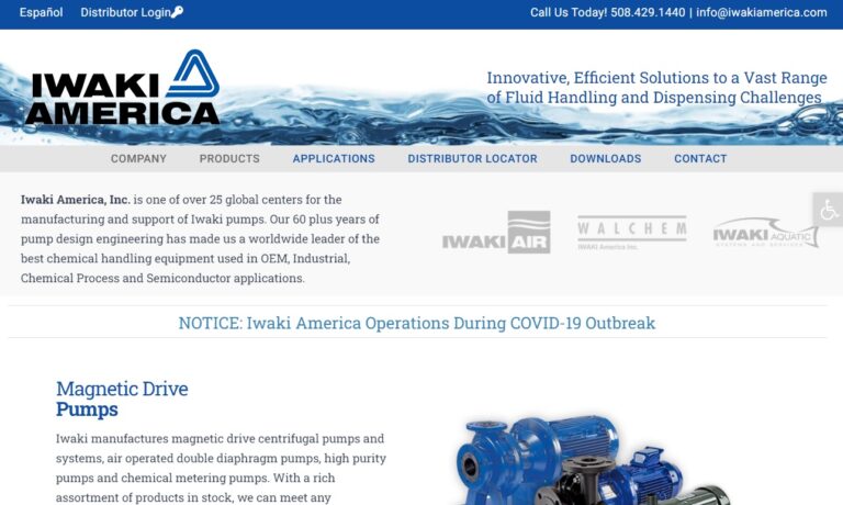 Holliston, MA | 508-429-1440Iwaki America is a leading manufacturer of precision-engineered metering pumps, which are designed to deliver accurate and reliable performance in a wide range of industrial and commercial applications. The company has been in operation for over 50 years and is based in Holliston, Massachusetts, with additional locations in California, Texas, and Illinois.